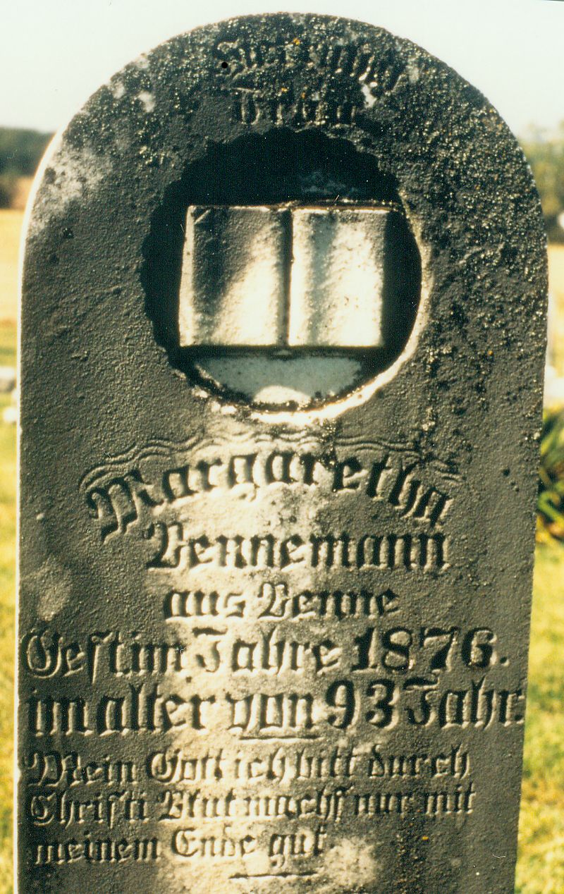 Tombstone of ”Margaretha Vennemann from Venne”, Dudleytown, Jackson Co., IN